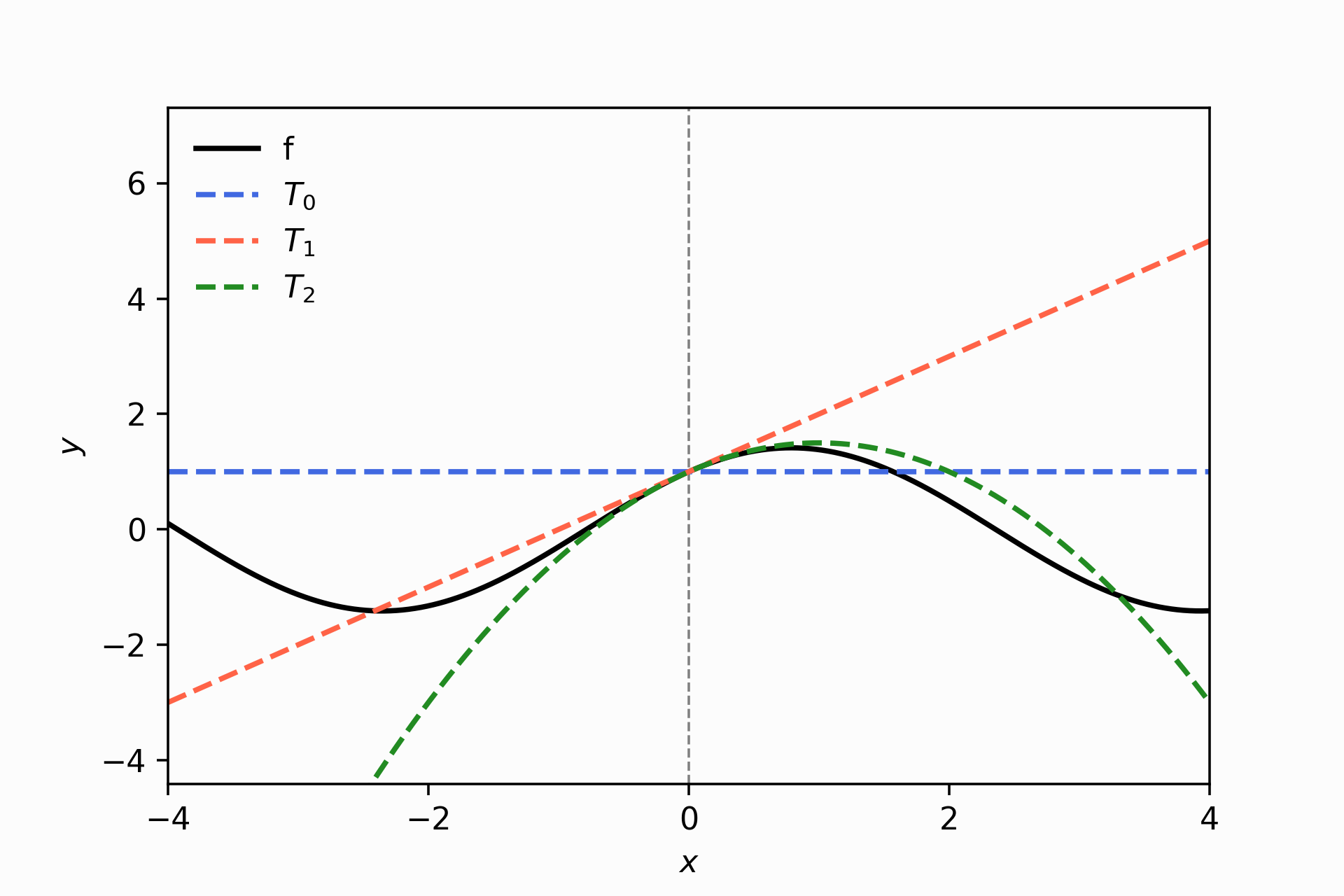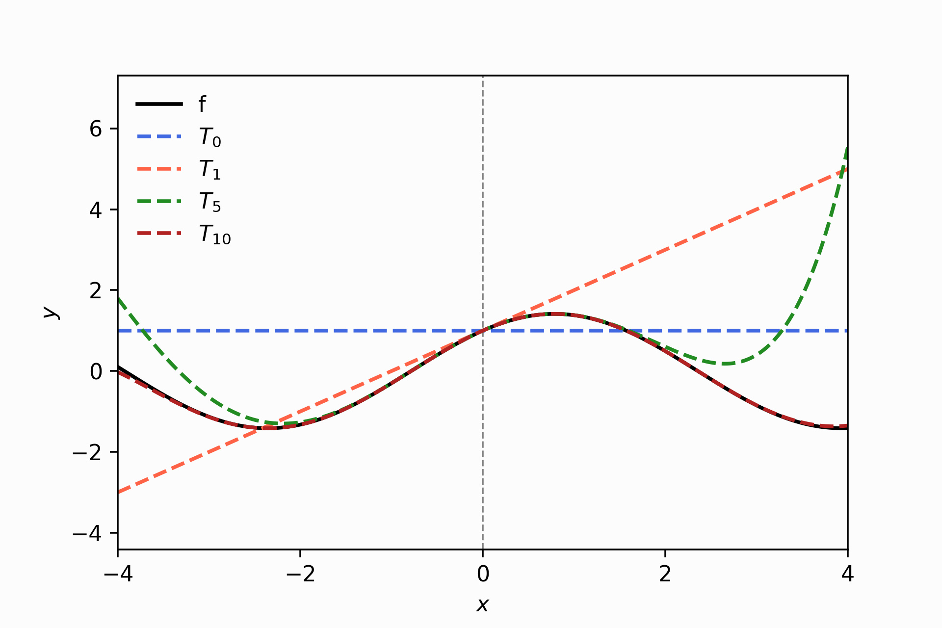 So we can continue repeating this process, adding more coefficients and getting a more accurate approximation. Of course, at the cost of computing higher-order derivatives.