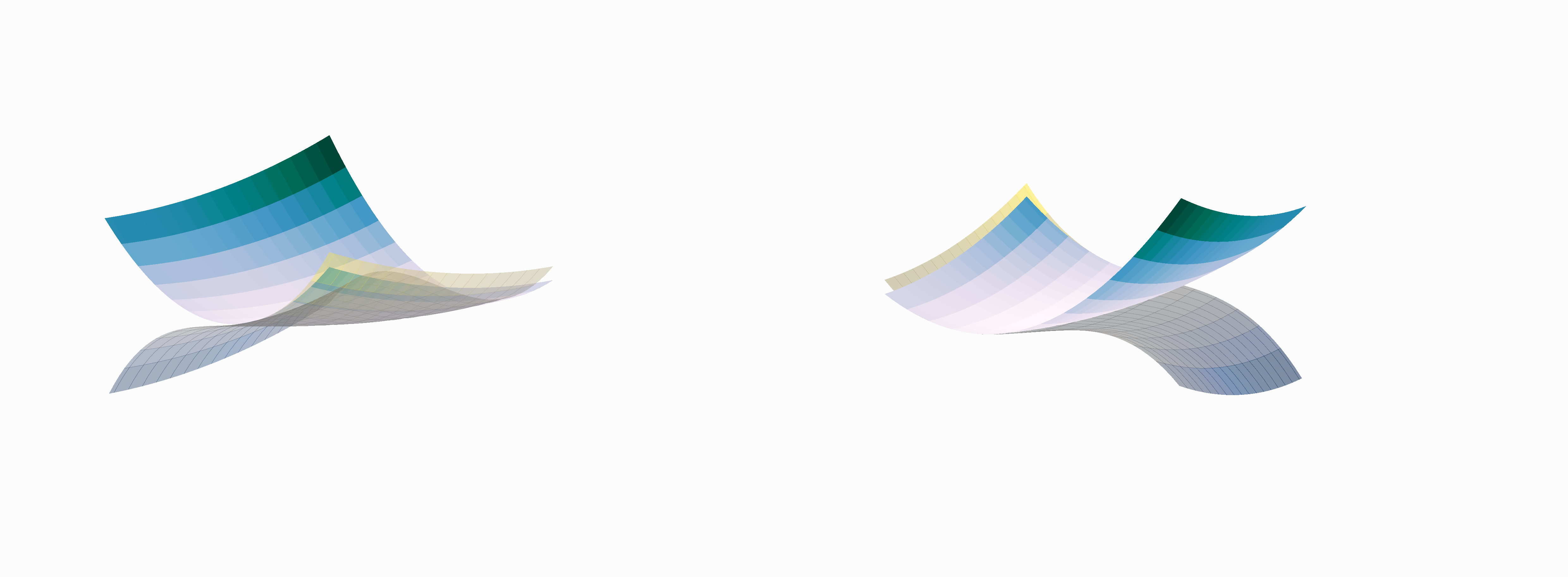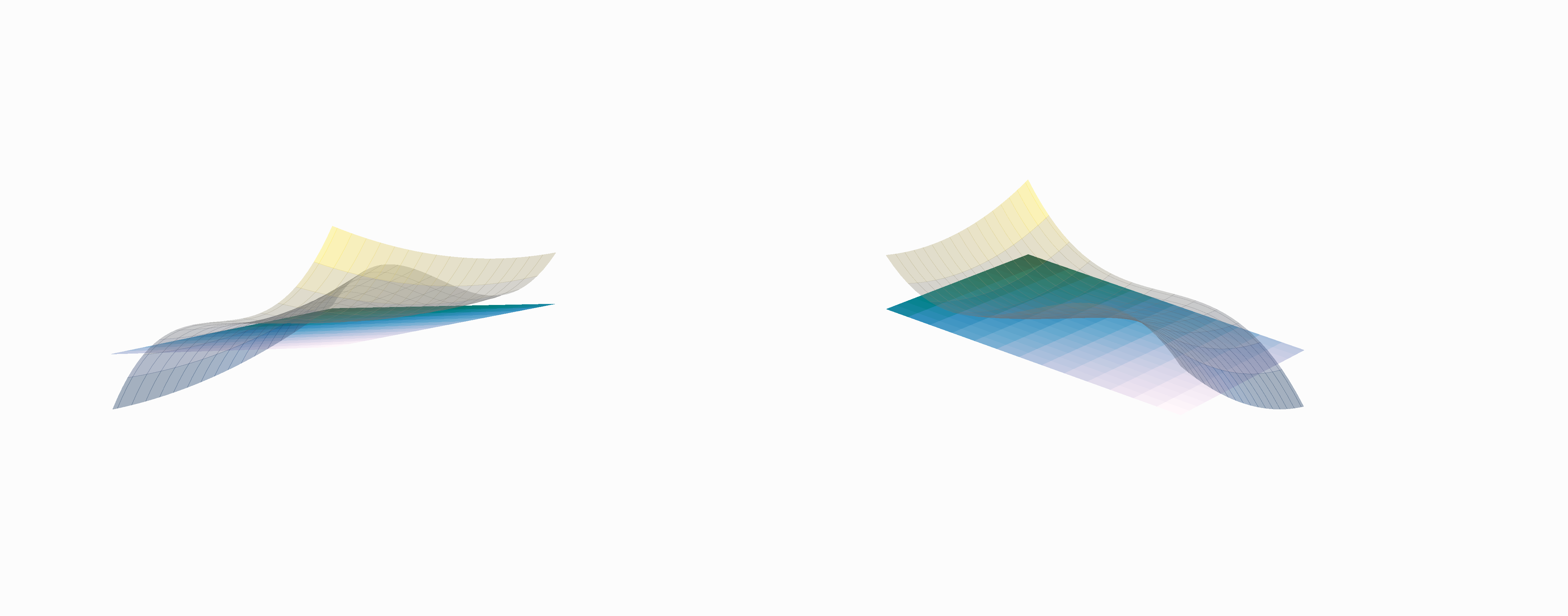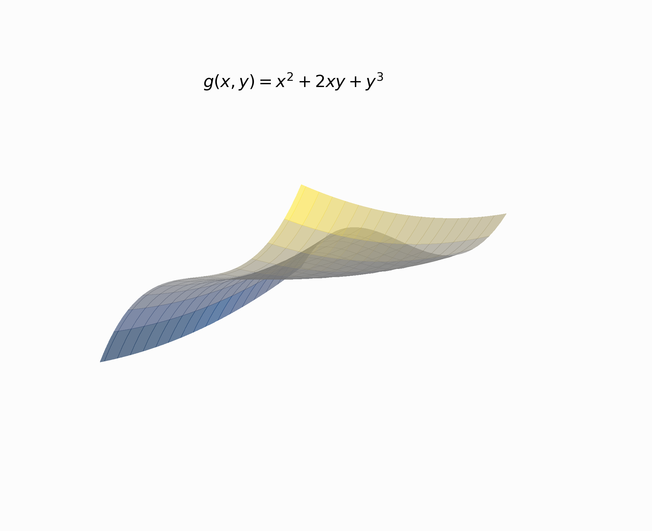 Similar to the 1D case, but now the line is a plane. You can notice that is a good approximation at the very close neighbourhood of the point . However, the plane fails to approximate the curvatures of .